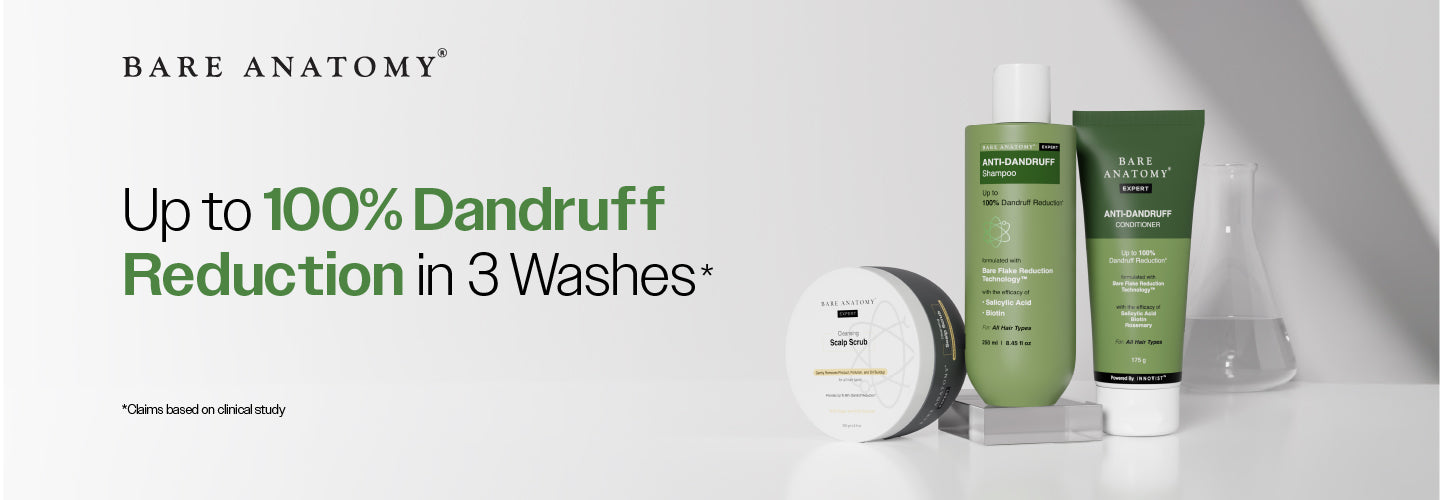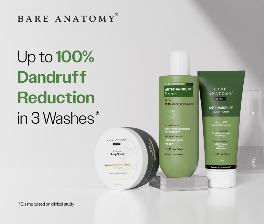 Dandruff can be a persistent issue when the scalp tends to get dry and flaky. At Bare Anatomy, we believe in delivering clean and science-backed formulations that cater to all your hair needs. With our range of anti dandruff products crafted using cutting-edge technology and natural ingredients, it can be easier for you to achieve a healthier, flake-free scalp.