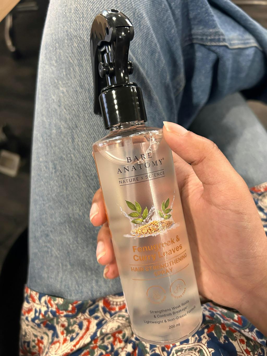 Read MoreBare Anatomy Nature x Science Fenugreek & Curry Leaves Hair Strengthening Spray, powered by Innovist, is a repair-focused hair spray designed to strengthen weak hair and reduce breakage caused by dryness and damage. Inspired by traditional remedies like fenugreek water for hair, this lightweight, non-oily spray conditions strands without leaving any residue or stickiness.
