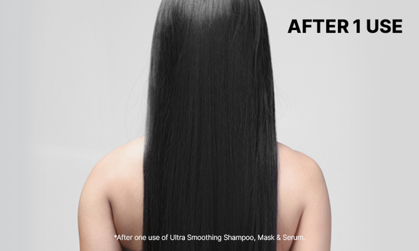 After shampooing apply a generous amount of the Ultra smoothing mask to damp hair. Leave it on for up to five minutes. Rinse thoroughly.