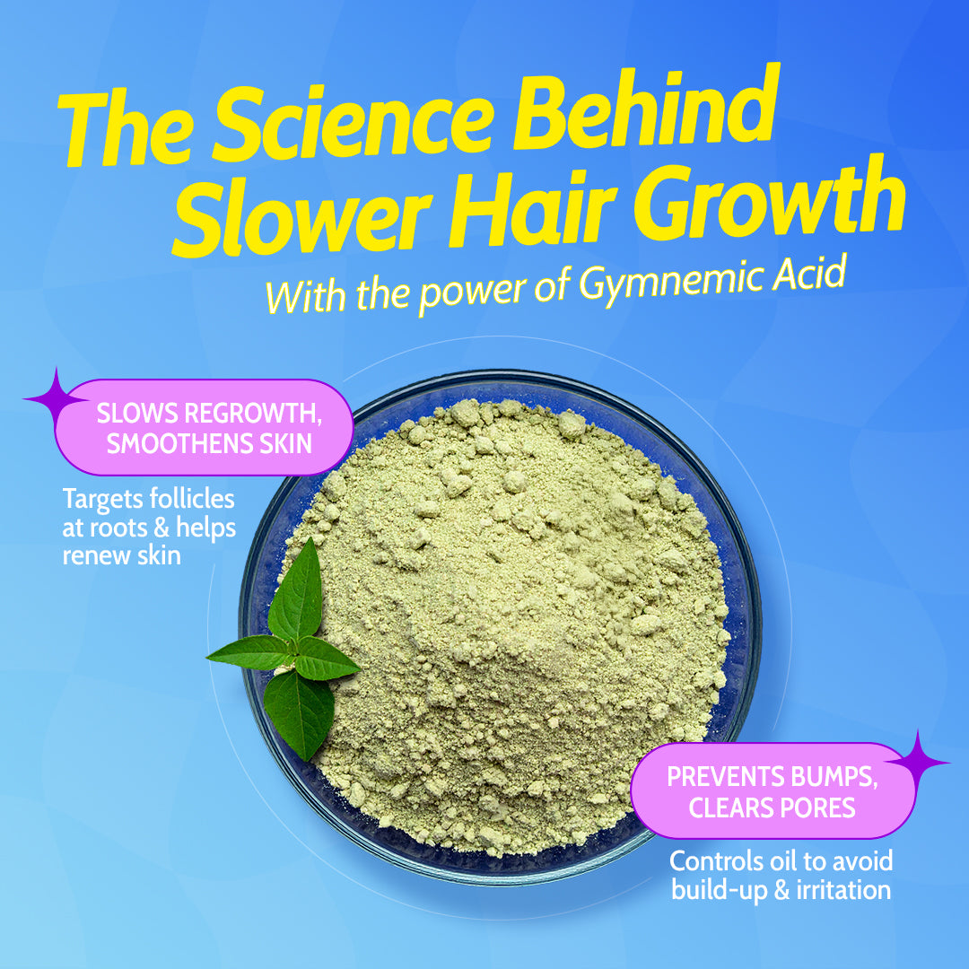 ✨ Slows Down Hair GrowthPowered by Gymnemic Acid, this roll-on helps reduce unwanted hair growth over time by inhibiting hair follicle activity. It also maintains skin smoothness post hair removal...